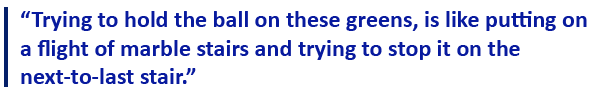 “Trying to hold the ball on these greens,” Julius Boros said, “is like putting on a flight of marble stairs and trying to stop it on the next-to-last stair.”