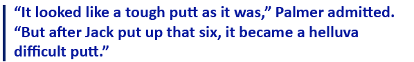 “It looked like a tough putt as it was,” Palmer admitted. “But after Jack put up that six, it became a helluva difficult putt.”