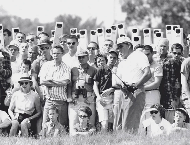 Cupit recorded a couple of bogeys early in his back nine on the 11th and 12th holes. By the time that Palmer reached the 16th hole he was just one stroke out of the lead. Palmer’s tee shot at the par-3 wound up 20-feet from the hole and he then stroked in the curling putt and his “army” erupted into loudest cheer of the tournament. Palmer was now tied with Cupit for the lead at eight-over.