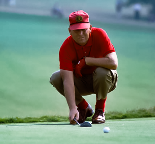 In the second round, played in warm and humid conditions, Goalby’s scrambling par on the par-5, 6th hole was more a harbinger of what was to come than a propellant to keep his fine play going. Coming to the hole at two-under for the day, Goalby pushed his drive into the rough, topped a three-wood across the fairway and into the rough on the left side of the hole. From there he hit a spectacular low hook shot to the green. He two-putted for his par, but then three-putted the 7th hole for a bogey and bogeyed the 9th hole. He finished the front nine in even par and remained at even par at the end of the day shooting a 71 for a two-round total of 135.