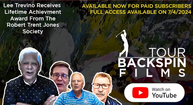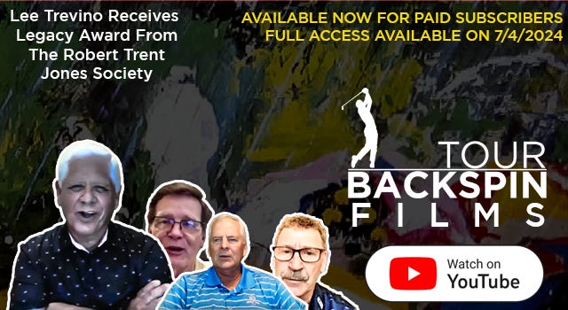 The latest episode of The Tour Backspin Show just dropped for our annual paid subscribers and features Lee Trevino receiving the Legacy Award from the Robert Trent Jones Society, and discussing his illustrious career. Early access to The Tour Backspin Show is one of the benefits of being a paid subscriber to Tour Backspin. Free subscribers will have access to this episode of The Tour Backspin Show in two weeks.