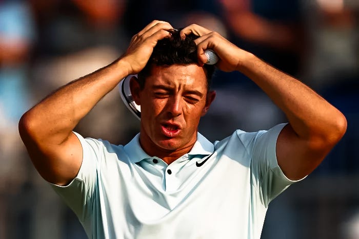 After missing a putt of about three feet on the 16th hole, his first miss from inside three feet in 496 attempts for the season, he missed another kneeknocker at the 18th. Before those missed short putts, McIlroy missed the green at the par-3, 15th hole resulting in a bogey. In all, he bogeyed three of the last four holes.