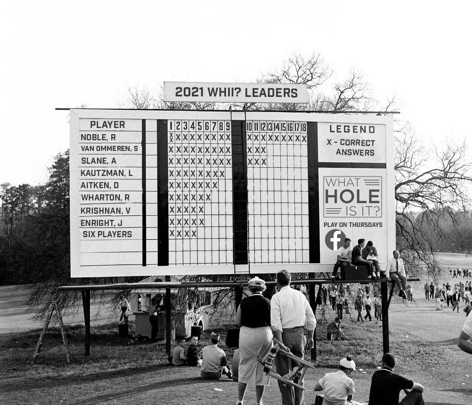 Congratulations to Kyle Cronk, a member of the Washington Golf Facebook group, the winner in the WHAT HOLE IS IT? contest from last week. Kyle correctly identified #4 at Yellowstone Club and then beat out two other correct answers in the random draw. The updated WHII leader board is displayed below and congratulations to Rob Noble for getting through the first 18 holes.